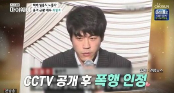 앞서 지난 2010년, 최철호는 술을 마신 뒤 후배 여성 배우를 폭행했다는 논란에 휩싸였다. 당시 공개된 CCTV에는 최철호가 폭행하는 모습이 담겼고, 결국 기자회견을 열어 사과했다.