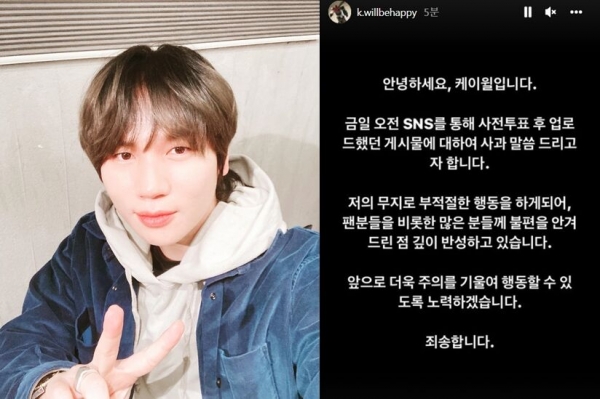 [스타인뉴스 양경모 기자] 가수 케이윌이 선거법 위반 논란에 휘말린 가운데 사과했다.