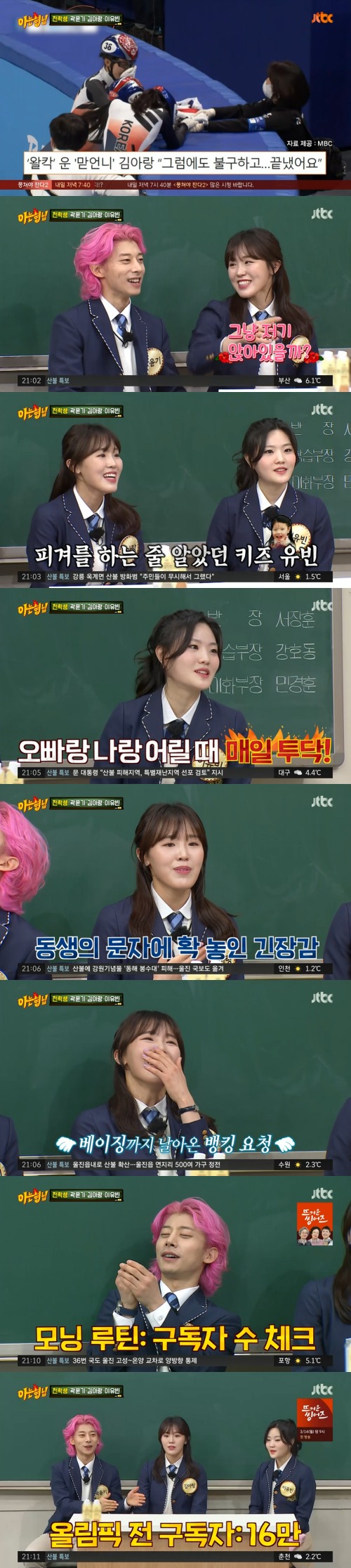 5일 방송된 JTBC '아는 형님'에는 쇼트트랙 국가대표 곽윤기 김아랑 이유빈이 출연했다.