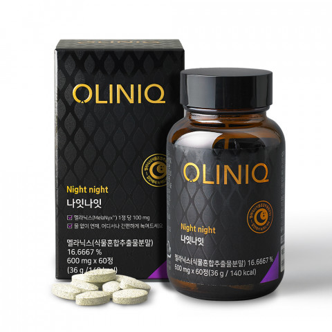 올리닉 나잇나잇은 자주개자리·클로렐라·쌀겨분말 등으로 만든 식물혼합추출물 ‘멜라닉스(MelaNyx™)’를 포함한 프리미엄 제품으로, 자연에서 유래한 식물성 멜라토닌을 함유하고 있다. 멜라토닌은 유럽식품안전청(EFSA)에 등록된 안전한 성분으로 자연적인 수면을 유도하는 작용을 한다.