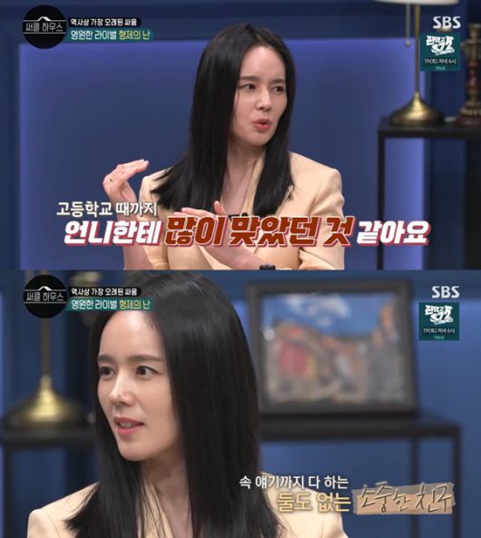 한가인은 "고등학교 때까지 언니한테 정말 많이 맞았다. 머리도 잡고 배를 때리기도 하고 발가락도 물려서 피가 난 적도 있다. 주먹으로 쳐서 잇몸에서 피가 나서 엄마한테 이르기도 했다"고 말해 모두를 놀라게 했다.