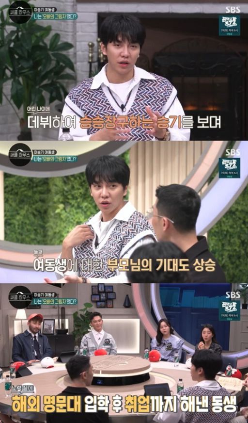 또 여동생이 자신의 그림자로 살았다고 느꼈다는 것을 알고 충격을 받았다고 전했다. 이승기는 "제가 너무 잘된 장남이었다"라며 "제가 잘난 것이 아니라 시기적으로 운때가 맞았다, 그래서 여동생에 대한 기대감이 높아졌다"고 이야기했다.