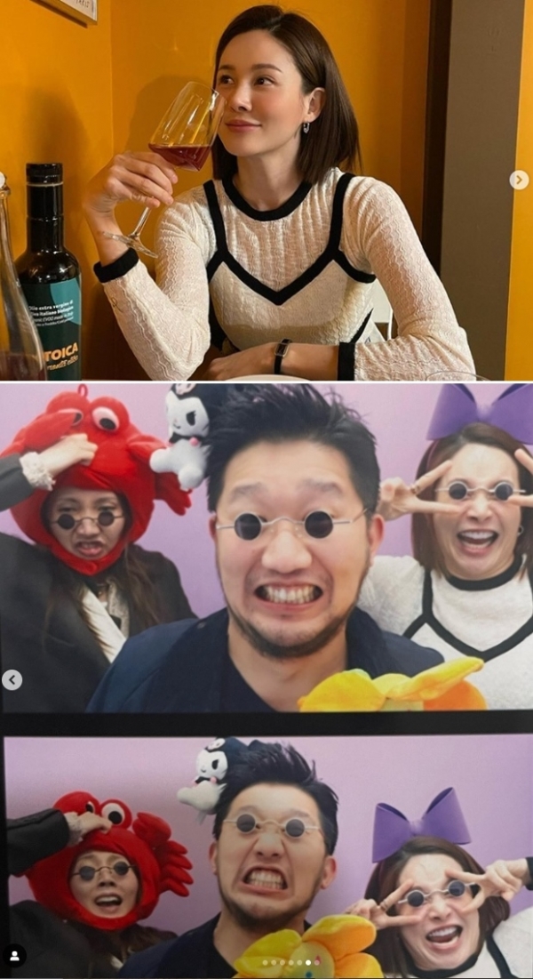 파스타와 함께 와인을 즐기고 있는 아이비는 어반자카바 박용인, 가수 겸 뮤지컬 배우 장은아와 함께 코믹한 콘셉트 사진을 찍으며 웃음을 선사하고 있다.
