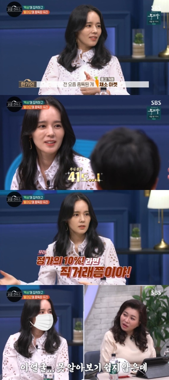 본격적인 토론에 앞서 한가인은 최근 중고 거래 앱 애용에 중독되어 있다고 고백하며 "온도가 41도이다"라고 밝혀 시선을 모았다. 한가인은 육아용품을 주로 중고 거래 앱으로 구매한다며 "필요하면 포털사이트보다 중고 마켓부터 검색한다, 괜찮은 게 있으면 중고 마켓으로 먼저 산다, 아이가 크면 금방 못쓰는 거니까"라고 말했다.