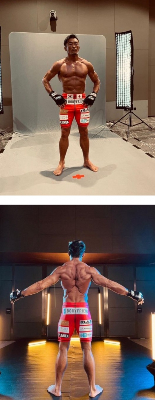 공개된 사진 속에는 추성훈이 경기 전 프로필을 촬영 중인 모습이 담겨 있다.두 달만 13kg를 감량한 보람이 느껴지는 탄탄한 몸의 추성훈이 눈길을 사로잡는다.