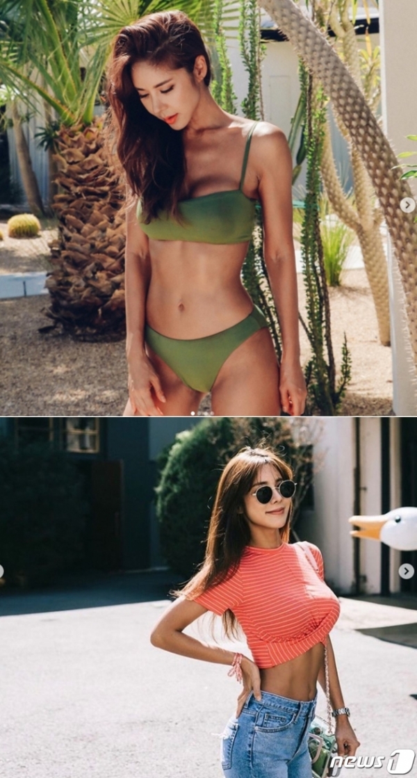 사진 속 김준희는 구릿빛 피부에 독보적인 글래머러스한 몸매를 자랑하며 포즈를 취하고 있다.