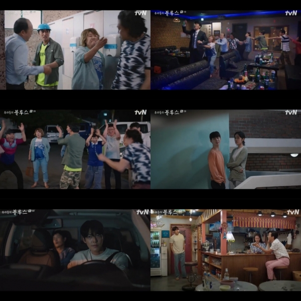 동창회에 한수, 은희, 동석, 인권, 호식 등 참여하고 재미있게 논다. 오랜만에 동창회에 온 한수의 카드로 회식비를 긁으려고 인권이 장난치지만 은희가 막고 한수에게 간다. 인권과 호식이 싸우려 들자 정준이 나타나 말리고 이들을 트럭으로 집까지 안전하게 데려다 준다. 정준의 연락을 받고 나온 (인권의 아들)정현과 (호식의 딸)영주는 비밀 연애를 하는 사이로 정준이 도착하기 전, 아파트 계단에서 만나 뽀뽀를 하고 각자의 아버지를 데리러 간다.