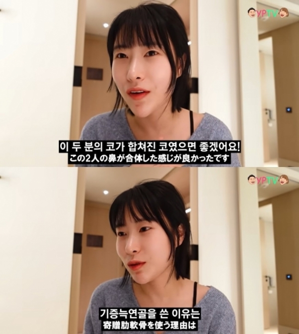 이어 코 수술 당시에 요청사항이 있었느냐라는 물음에 "(원장님에게) 코끝이 동글동글하게 높아졌으면 좋겠다, 코가 짧아졌으면 좋겠다라는 걸 말씀드렸다"라며 "절골, 실리콘, 기증 늑연골로 코를 올렸다"라고 말했다.