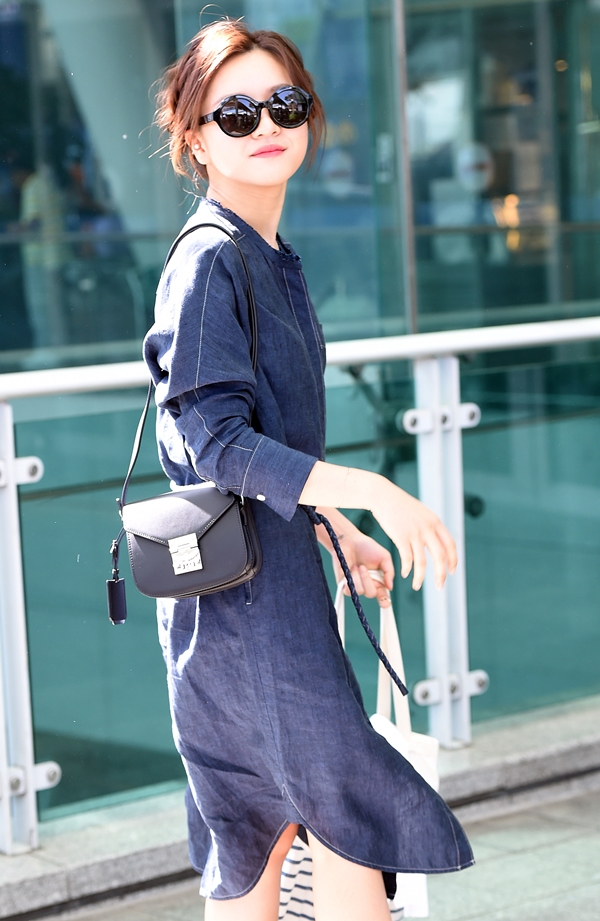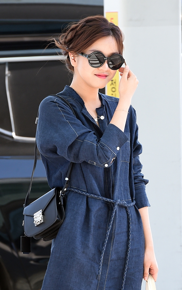 이날 고아성은 여성미가 돋보이는 데님 원피스와 함께 클래식하면서도 우아한 블랙 숄더백으로 포인트를 주며 러블리한 공항패션 스타일을 선보였다. 특히 라운드 프레임의 선글라스는 심플하면서도 유니크한 디자인으로 고아성의 작은 얼굴과 결점 없는 피부를 돋보이게 해주며 완벽한 스타일링을 완성시켰다.