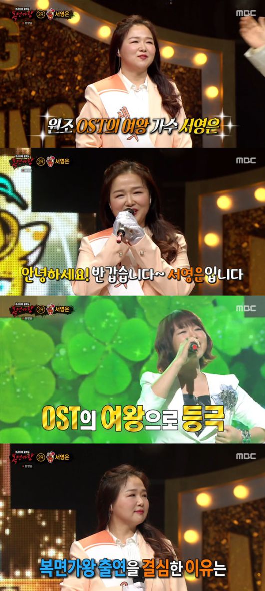 한편 ‘복면가왕’은 나이, 신분, 직종을 숨긴 스타들이 목소리만으로 실력을 뽐내는 음악 버라이어티 프로그램이다. 매주 일요일 오후 6시 방송.