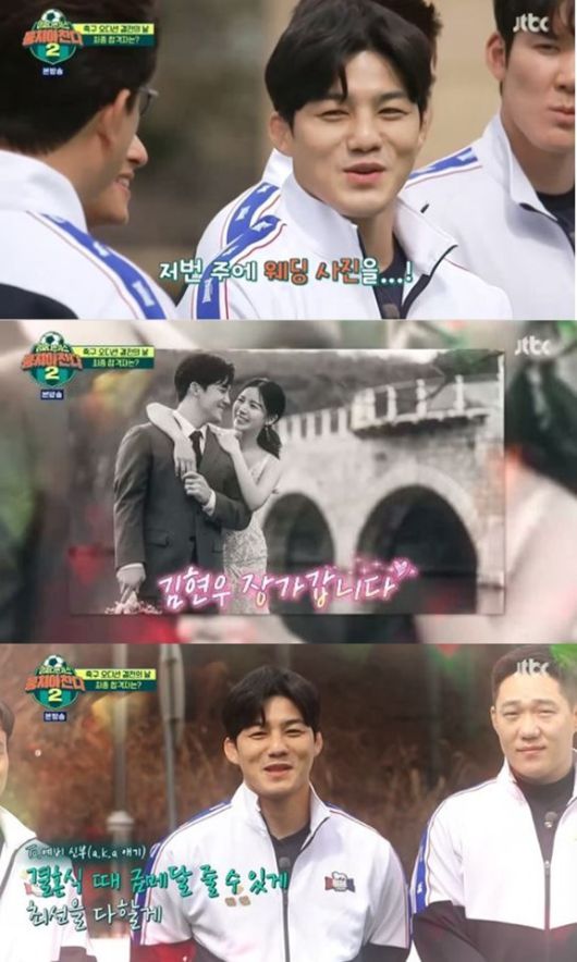 김현우는 17일 방송한 JTBC 예능물 '뭉쳐야 찬다2'에서 오는 10월 결혼식을 올린다고 밝혔다.