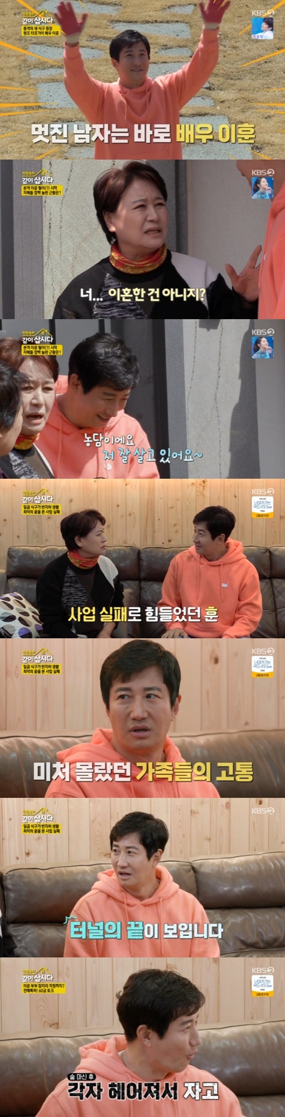 혜은이는 이훈과 동병상련의 아픔이 있다며 공감했다. 이에 이훈은 세 사람의 굴곡진 인생사를 알고 있어 늘 울컥해 '같이 삽시다'를 끝까지 시청하기 힘들었다고 털어놨다. 이어 이훈은 "이제 터널 끝이 보이기 시작했다"라며 달라진 근황을 전했다.