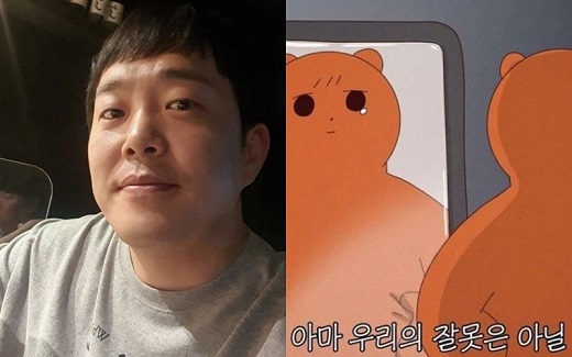 공개된 사진은 애니메이션 장면 중 하나로, 곰이 거울에 비친 자신의 모습을 보면서 뱃살을 꼬집고 있고 눈물 지었다. 자막엔 '이건 아마 우리의 잘못은 아닐 거야'라고 적혀있어 눈길을 끈다.