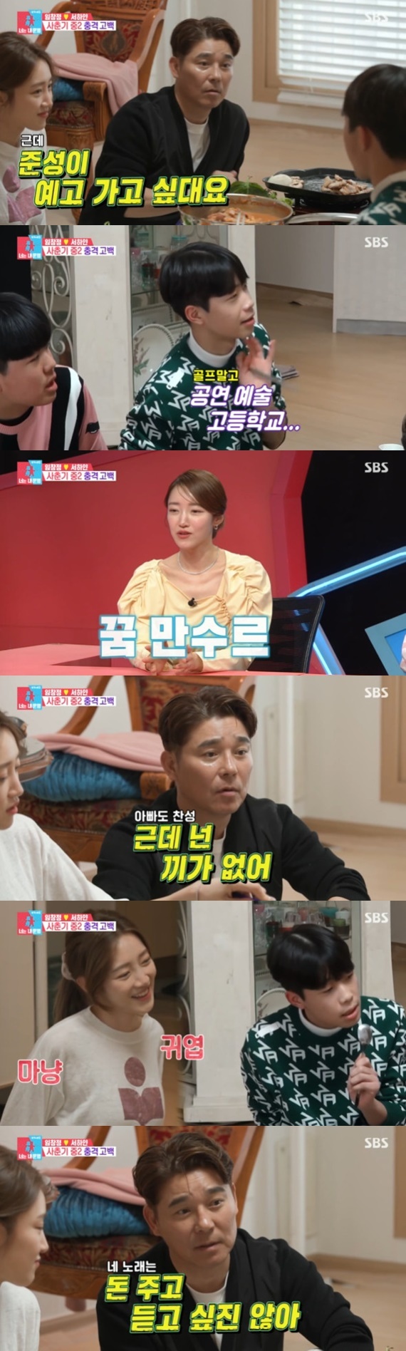 골프 꿈나무 준성이의 예술고등학교 발언에 임창정이 당황했고, 이에 준성이는 "제가 중2병이 걸려서, 지금은 (예고에) 가고 싶다"라고 조심스레 얘기했다. 이에 서하얀은 "꿈이 자주 바뀐다"라며 준성이를 대변하기도.