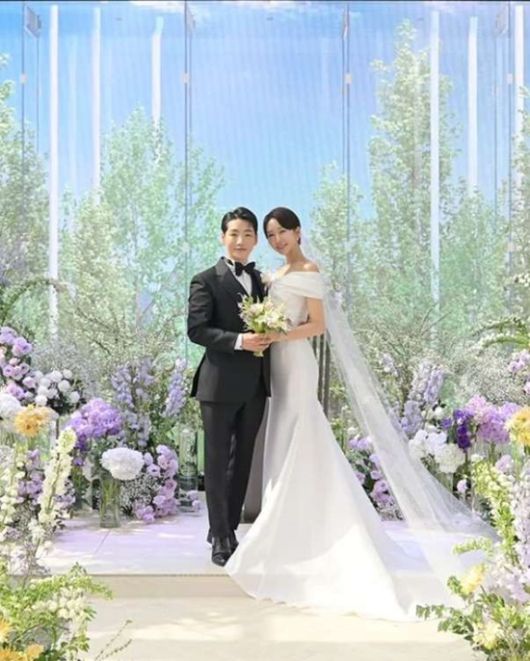 공개된 사진에는 한영, 박군 커플이 식장에서 결혼식 사진을 촬영한 모습이 담겨 있다. 웨딩드레스를 입은 한영은 우아한 분위기를 뽐냈으며, 새 신랑 박군은 듬직한 면모를 보였다.