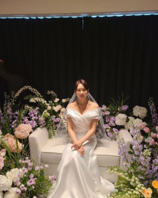 공개된 사진에는 꽃들로 가득한 신부대기실에 앉아있는 한영의 모습이 담겼다. 한영은 우아한 디자인의 웨딩드레스를 완벽하게 소화, 날씬한 몸매를 뽐냈다. 과감하게 드러낸 어깨라인과 쇄골까지 감탄을 자아낸다.