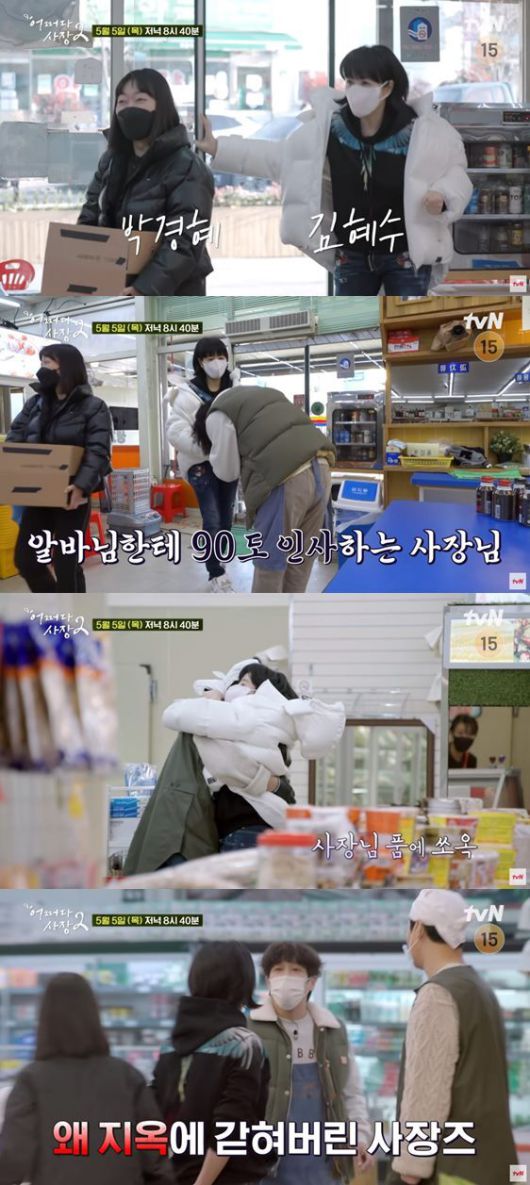 차태현은 김혜수에게 카운터를 맡기고 고기를 썰러 이동했다. 하지만 카운터에서는 김혜수의 비명 소리가 들렸고 이에 차태현은 "왜그래. 또 무슨 일이야. 알바 괜히 오셨어"라고 한숨을 쉬었다.