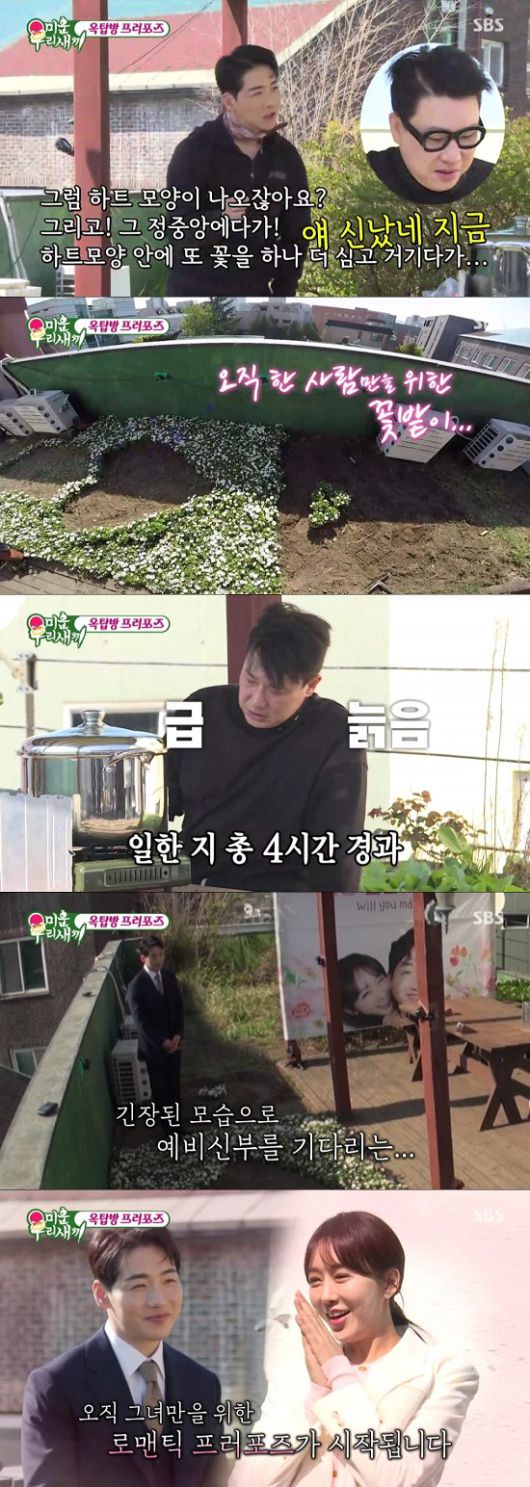 이어 꽃길이 완성된 후 박군은 정장으로 갈아입고 긴장된 모습으로 꽃밭 앞에 섰다. 한영이 옥탑방으로 들어서자 "자기야"라고 불렀고 오직 한 사람만을 위한 박군의 로맨틱 프러포즈에 기대감을 불러일으켰다.