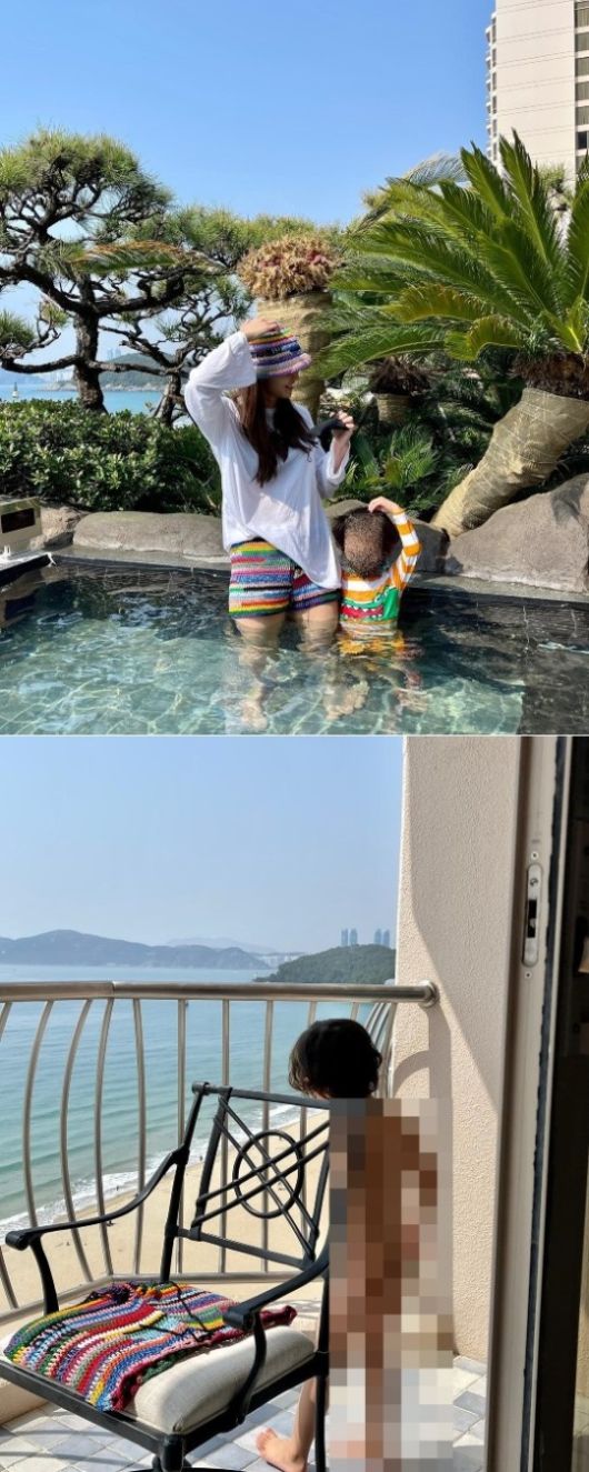 공개된 사진에는 이시영이 아들과 부산에서 즐거운 시간을 보내는 모습이 담겼다. 논란이 된 사진은 세번째 사진. 해당 사진에는 숙소의 베란다에 알몸으로 서 있는 아들의 뒷모습이 담겼다.