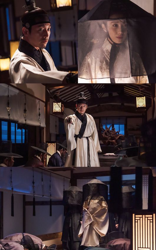 뿐만 아니라 갑자기 그의 사저로 행차한 최가연의 모습이 포착돼 긴장감을 감돌게 한다. 화려한 검은 너울을 쓰고 중앙에 서 있는 대비는 그 누구보다 위엄을 과시하고 있다. 박계원을 향해 차갑고 단호한 눈빛 속 묘한 감정이 서려있는 최가연의 눈빛은 두 사람 사이 각별함을 느낄 수 있게 한다.