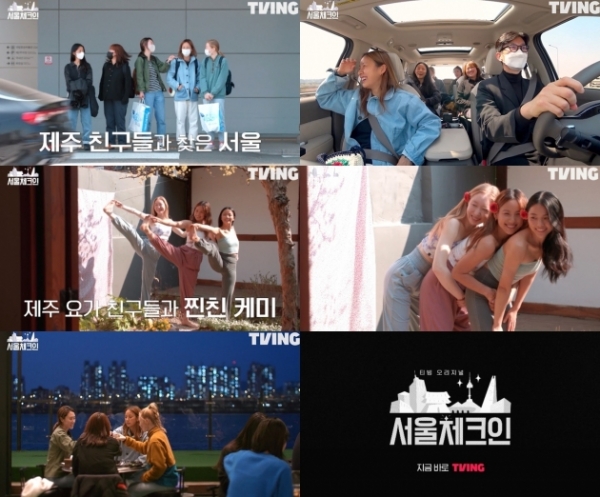 6일 공개되는 티빙 오리지널 '서울체크인'(연출 김태호, 김훈범, 강령미/ 작가 최혜정/ 제공 티빙(TVING)) 5회에서는 이효리와 제주도 절친들이 요가 화보 촬영과 더불어 볼거리 가득한 서울 여행으로 낭만을 즐길 예정이다.
