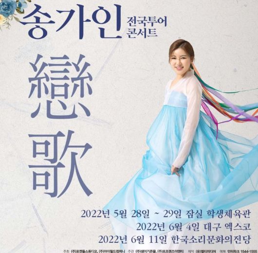 이와 함께 오는 28일 잠실 학생 체육관을 시작으로 펼쳐지는 전국투어 콘서트의 포스터를 공개했다. 해당 포스터에서 한가인은 한복 홍보대사답게 아름다운 한복 자락을 휘날리며 해맑게 웃고 있다.