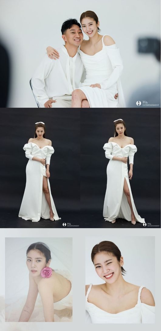 공개된 사진 속 손담비는 순백의 웨딩드레스를 입은 채 행복한 표정을 짓고 있다. 청순하면서도 과감한 매력이 담긴 웨딩 화보가 그를 더욱 빛나게 했다.