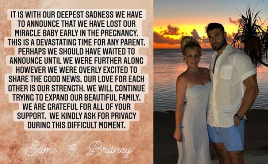 브리트니 스피어스와 남편 샘 아스하리는 공동 성명을 통해 "어떤 부모에게도 비통한 시기다. (임신 사실을) 좀 더 늦게 알렸어야 했지만 너무 기뻐 일찍 발표했다"고 자책했다.