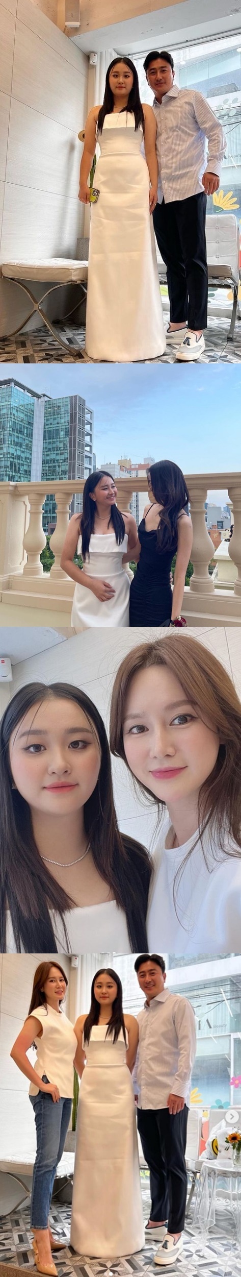 이혜원은 14일 사회관계망서비스(SNS) 계정에 "드레스가 어색한 축구소녀, 아빠랑 둘이 찍는데 왜 내가 울컥한 건지, 이 기분 뭘까요"라며 드레스를 입은 딸 리원양과 남편 안정환의 사진을 공개했다.