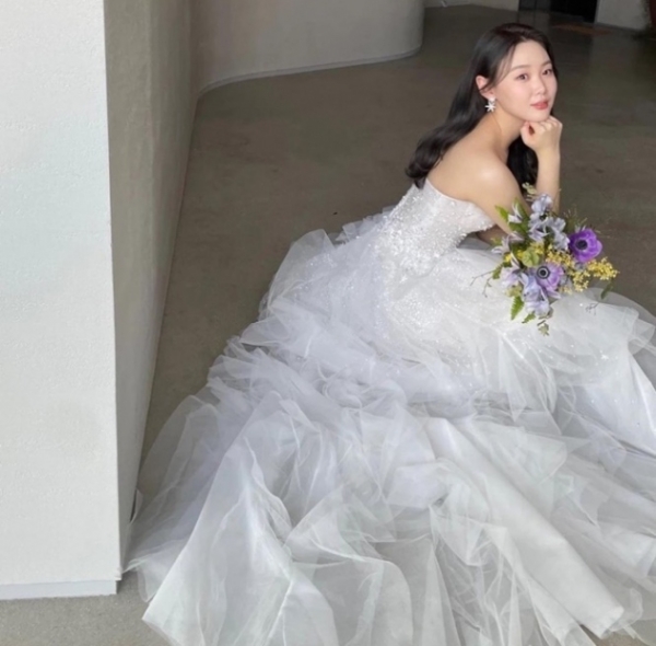 [스타인뉴스 박규범 기자] 결혼을 앞둔 아나운서 출신 방송인 김수민이 아름다운 웨딩드레스 자태를 자랑했다.