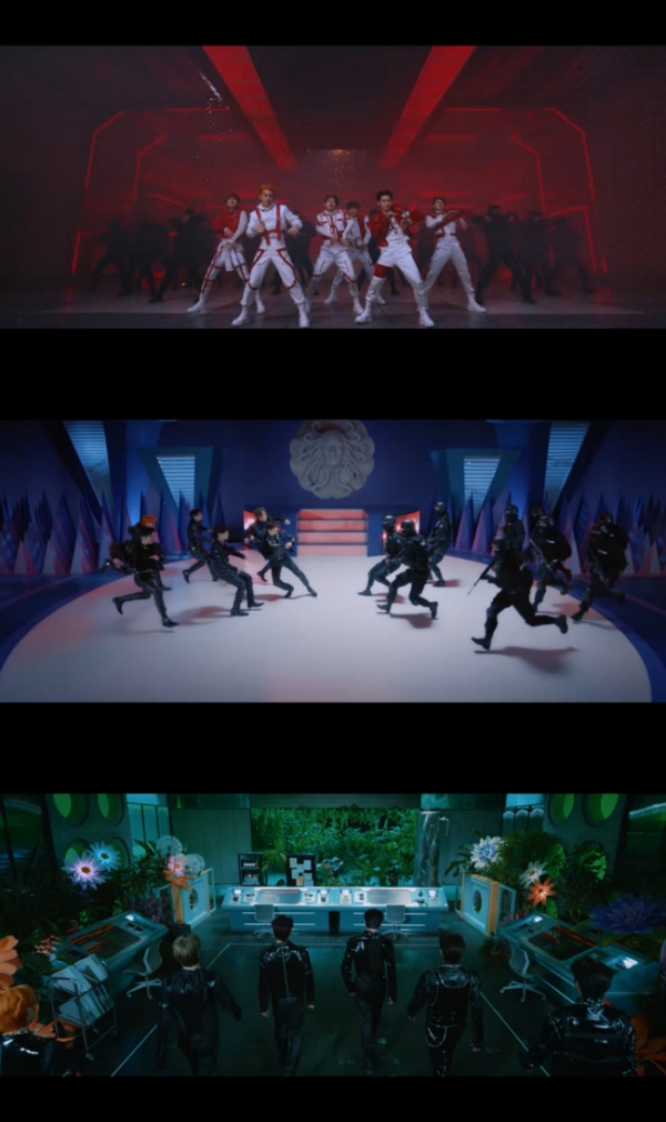 결투의 끝에 화려한 승리를 맞이한 여섯 멤버는 SF장르를 연상케 하는 비현실적 공간으로 힘찬 발걸음을 내디디며 뮤직비디오 본편에 대한 기대감을 한층 끌어올렸다.