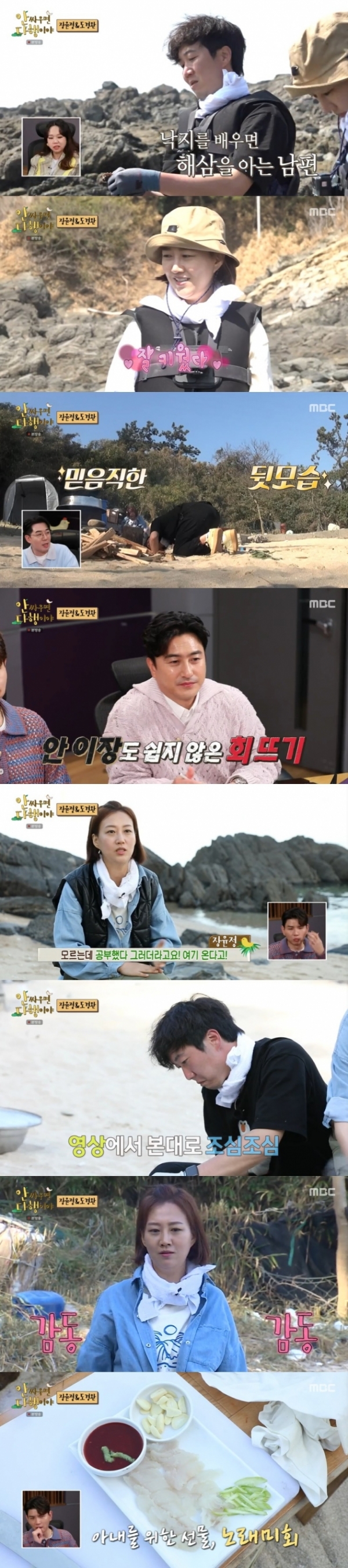 23일 오후 방송된 MBC 예능 프로그램 '안싸우면 다행이야'에서는 가수 장윤정, 방송인 도경완 부부가 무인도 생활을 이어가 시선을 모았다.