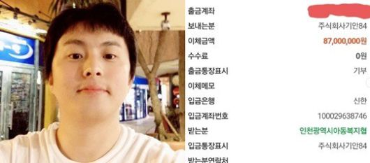 기안84는 지난 24일 자신의 SNS에 "이번 전시로 판매한 그림의 순이익금은 아동복지협회에 기부했다"고 밝히며 수익금 입금 내역이 담긴 사진을 게재했다. 사진에는 기안84가 인천광역시아동복지협회에 8700만 원을 기부한 내역이 담겨 있다.