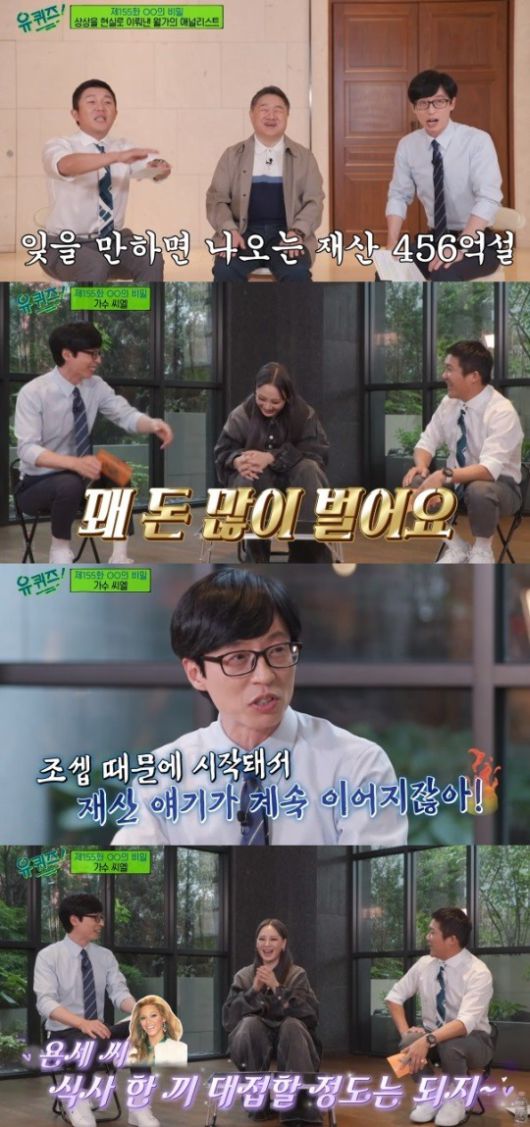 25일 방송된 tvN 예능프로그램 '유 퀴즈 온 더 블럭'(이하 '유퀴즈')155화에서는 월가의 28년 차 신순규 애널리스트가 출연했유재석의 재산 456억설이 다시 불거진 모습이 그려졌다..