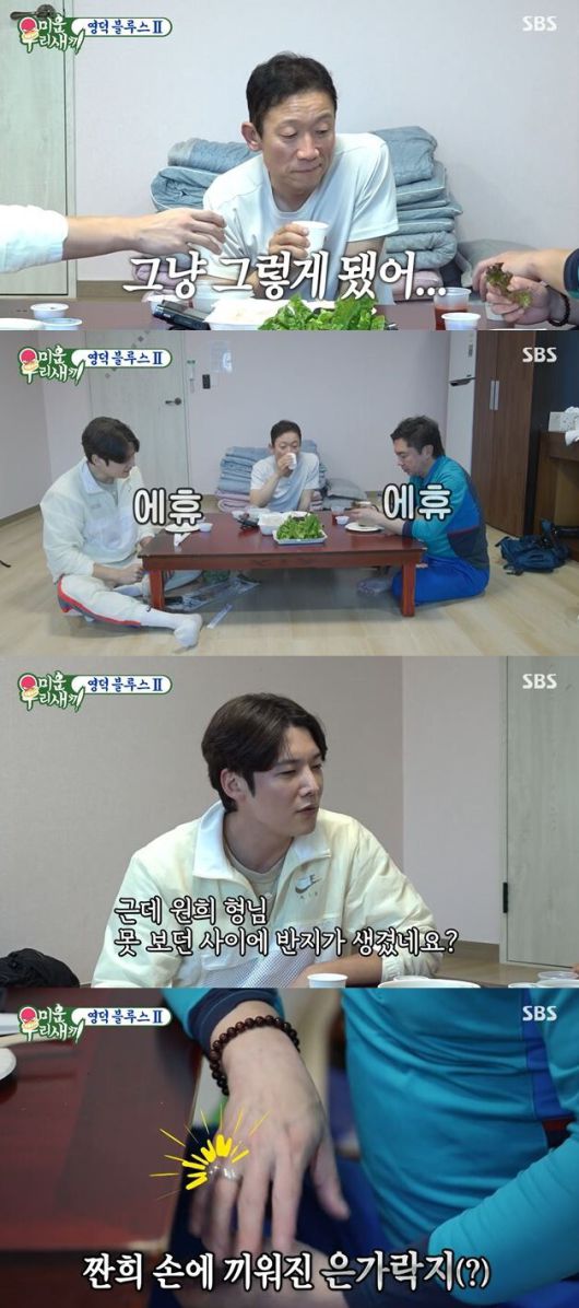 그러던 중 최진혁은 임원희의 손에 끼워진 은가락지에 주목하며 "근데 형님 못 보던 반지가 생겼다. 예전엔 없으셨던 것 같은데"라고 지적했다. 이에 임원희는 "원래 끼던 것"이라고 답했다.