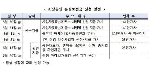 손실보전금 신청은 이날 정오 별도의 서류제출이 필요 없는 '신속지급 대상'부터 시작돼 7월 29일에 마감된다.