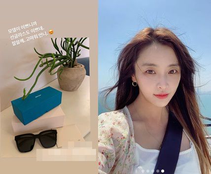 공개된 사진 속 정유미는 절친 언니 이소연에게 받은 선글라스 선물을 인증하고 있는 모습이다.