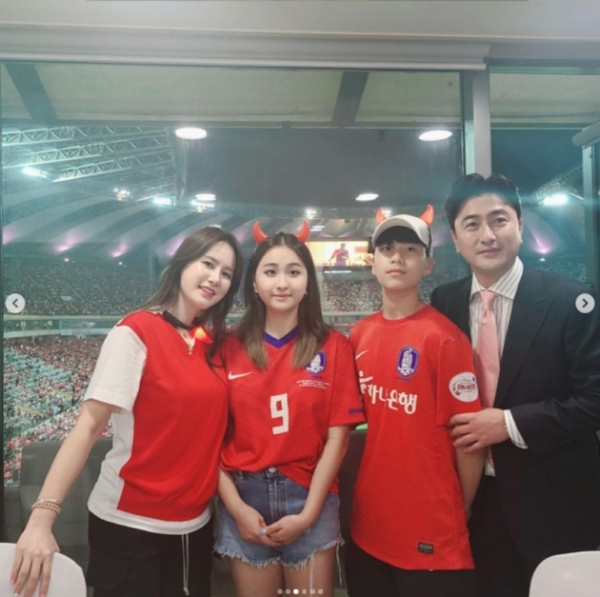 이어진 사진 속에는 딸 리원양, 아들 리환군, 남편 안정환과 함께 사진을 찍고 있는 모습도 담겼다. 가족들이 다 같이 경기장을 찾아 훈훈한 분위기를 만들고 있다.