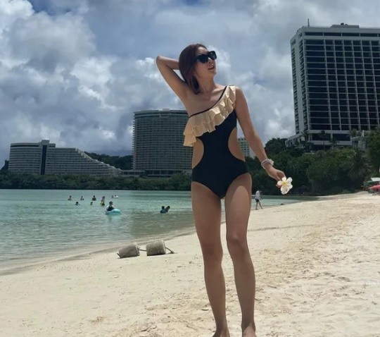 이정민은 4일 자신의 인스타그램에 괌 여행 중인 사진을 공개했다. 사진 속 이정민은 해변가에서 수영복을 입은 채 포즈를 취하고 있다.
