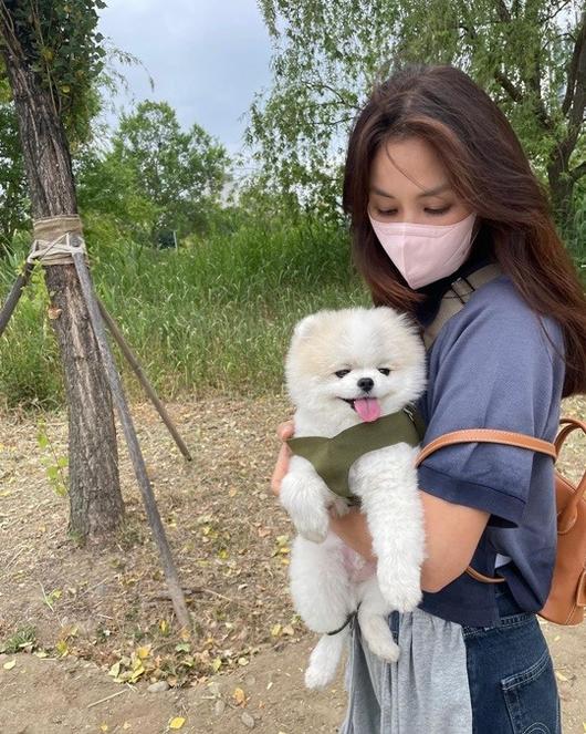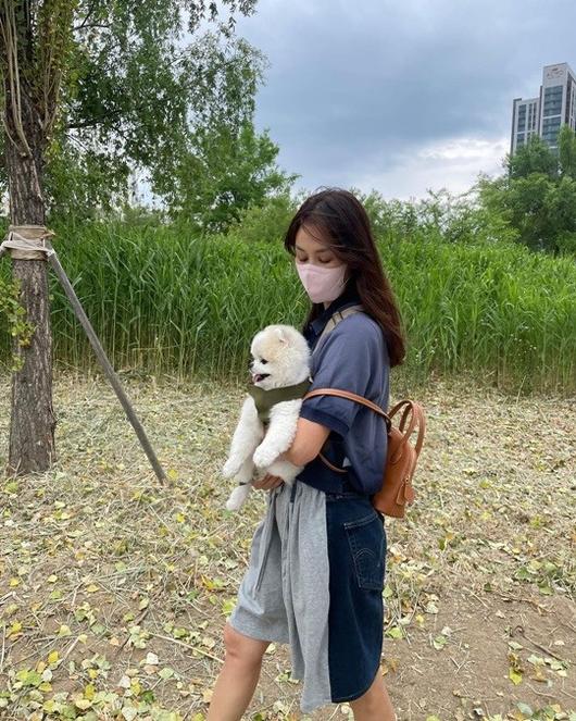 공개한 사진에는 자녀들, 반려견과 함께 외출한 고소영의 모습이 담겨있다. 고소영은 편안한 차림으로 공원을 걷고 있다.