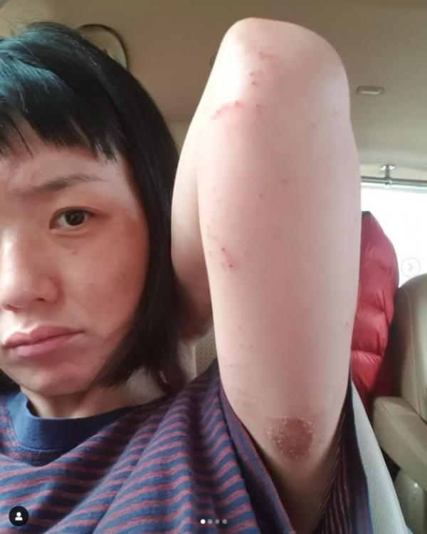 사진 속에는 면역력 저하로 인해 피부에 생긴 염증과 상처가 생긴 안영미의 모습이 담겼다. 이어진 사진 속에는 건강검진을 위해 병원을 찾은 안영미와, 이런 그를 기다리고 있는 소속사 대표 송은이의 모습이 담겨 눈길을 끈다.
