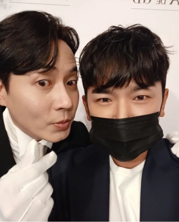 공개된 사진 속에는 이민우가 신랑 앤디와 함께 포즈를 취하고 있다. 두 사람은 여전히 유쾌한 케미를 자랑해 눈길을 끌었다.