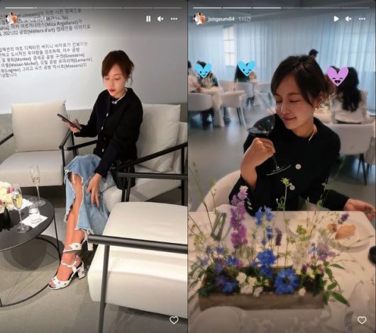 공개한 사진에는 고급스러운 분위기의 식당에서 식사를 하며 행복한 시간을 보내고 있는 황정음의 모습이 담겨있다.