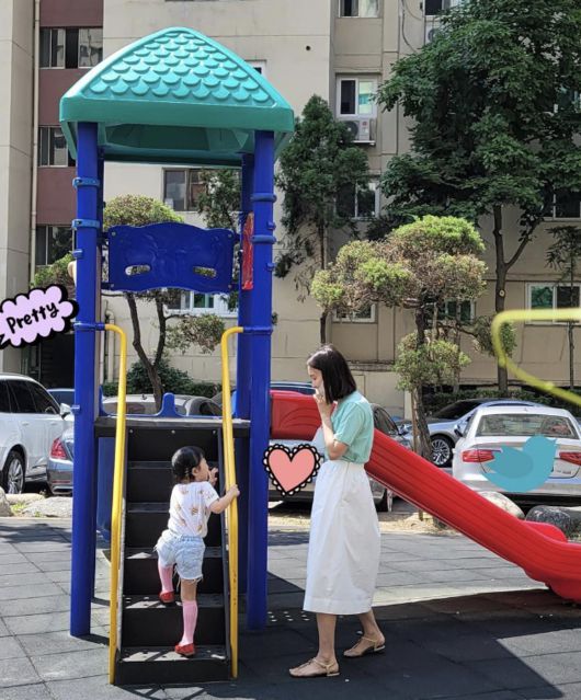 이지혜 일상 공개, 딸과 함께 놀이터에서 일상 모습 "배는 언제 들어가지"