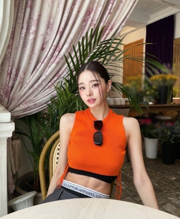 공개된 사진 속 송지아는 민소매 크롭티를 입고 있다. 살짝 드러난 탄탄한 복근이 시선을 사로잡는다.