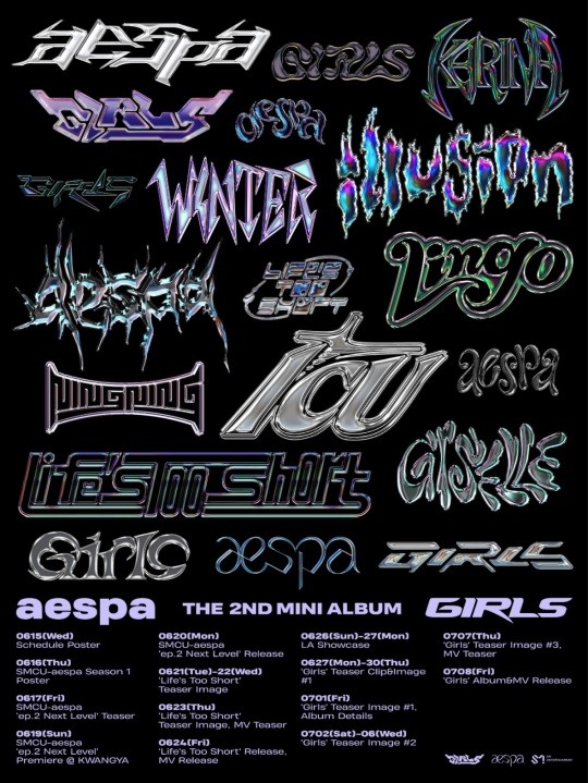 오늘(15일) 0시 에스파 각종 SNS 계정을 통해 스케줄 포스터가 공개됐다. 공개된 스케줄 포스터에는 SMCU-에스파 EP.2 ‘Next Level’(넥스트 레벨), 영어 싱글 ‘Life’s Too Short’(라이프스 투 쇼트), 두 번째 미니앨범 ‘Girls’ 관련 다채로운 콘텐츠 오픈 및 LA 쇼케이스 일정이 다이내믹한 아트웍으로 담겨 있어 눈길을 끈다.