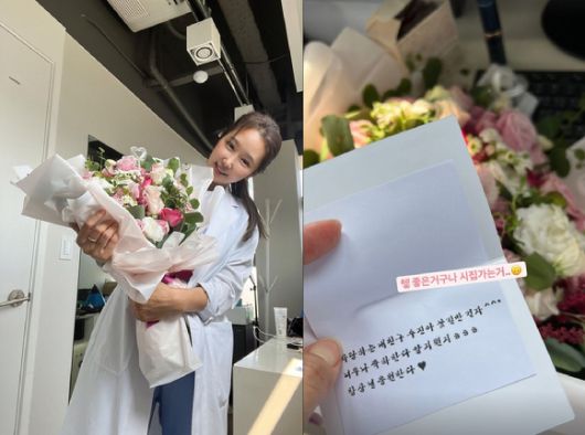이수진은 지난 21일 자신의 사회관계망서비스(SNS)에 "친구야 고마워. 좋은 일 있을 때 축하해 주는 찐찐 우정"이라는 글과 함께 한 장의 사진을 게재했다.