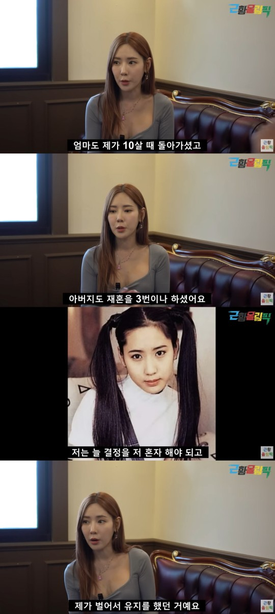 가정에 한이 있다고 밝힌 채은정은 "엄마가 10살 때 돌아가셨고 아버지는 재혼을 세 번이나 하셨다"라며 "새엄마가 계속 바뀌는 시기에 사춘기를 보냈다. 집에 오면 엄마가 바뀌어 있었다"라고 말했다.