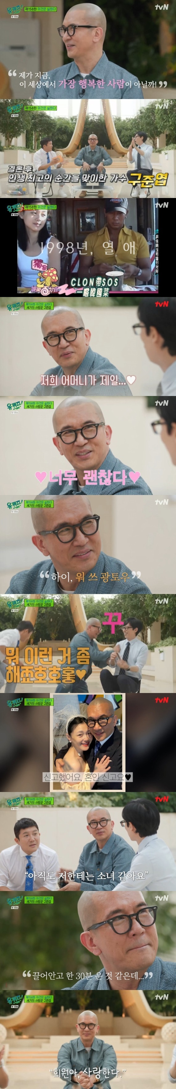 22일 오후 방송된 tvN 예능 프로그램 '유 퀴즈 온 더 블럭'(이하 '유퀴즈')에서는 '세기의 사랑꾼'으로 불리는 구준엽이 유퀴저로 함께했다.