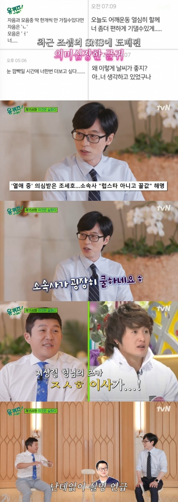22일 오후 방송된 tvN 예능 프로그램 '유 퀴즈 온 더 블럭'(이하 '유퀴즈')에서는 최근 열애설에 휩싸인 조세호의 근황이 알려졌다.